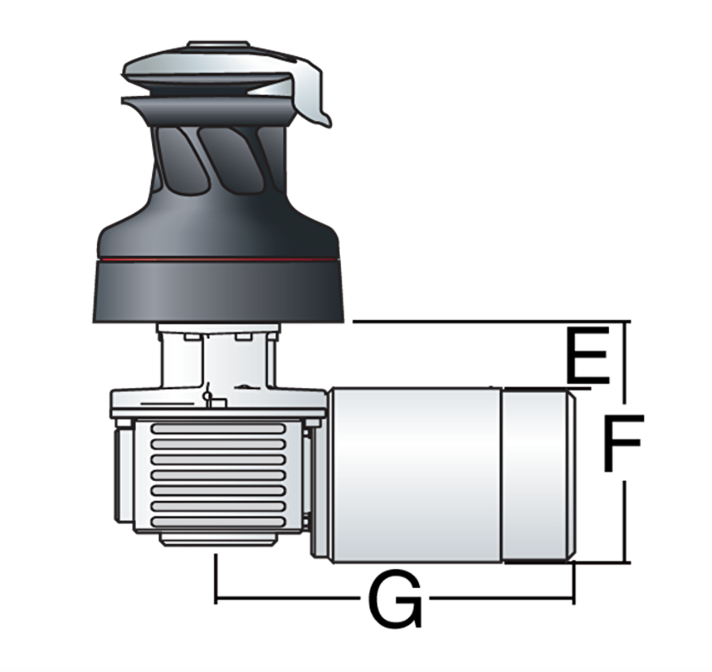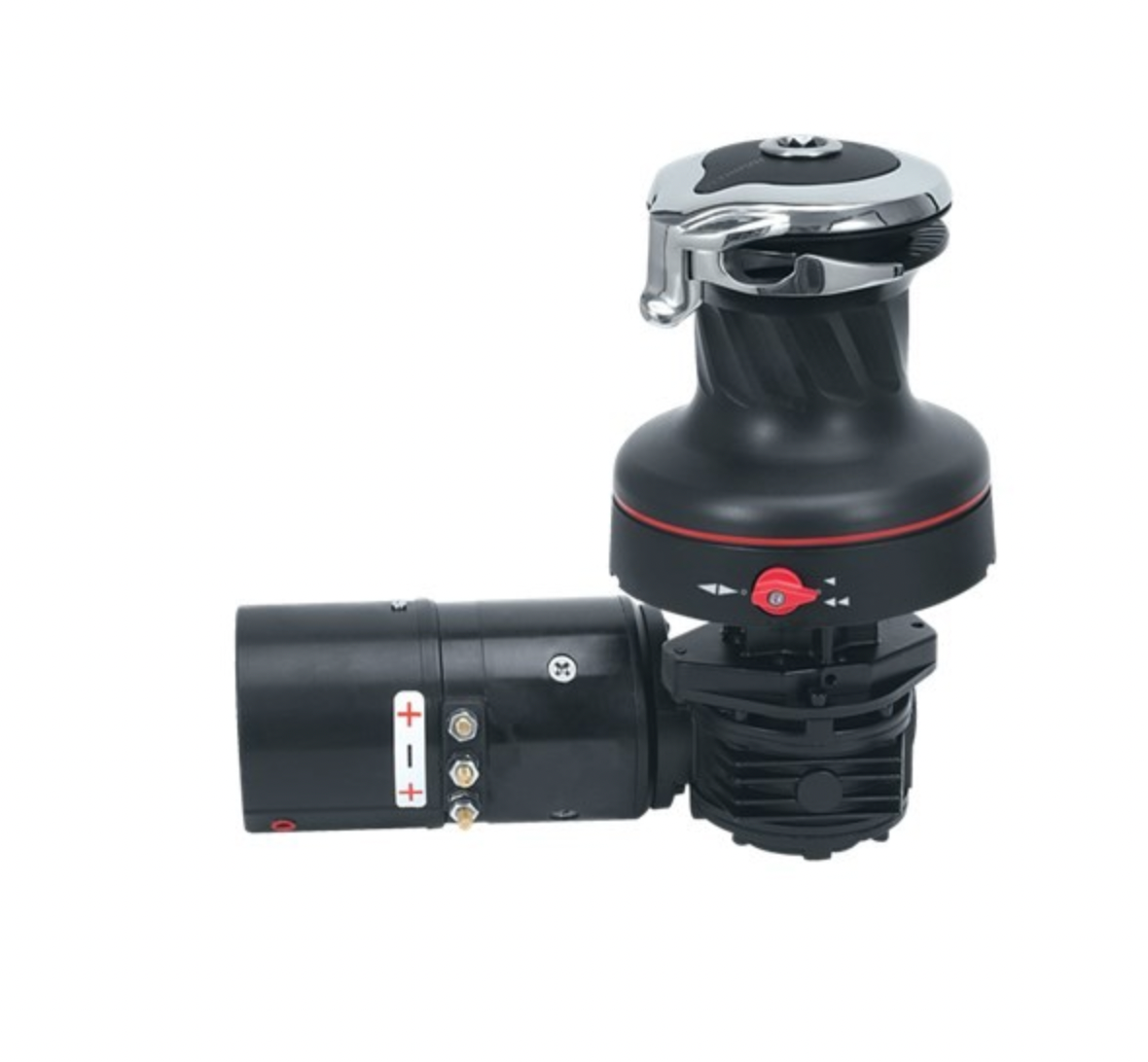 SHOP / BLUEWATER CRUISING / WINCHES / RADIAL HARKEN 40 Electric Self-Tailing Rewind™ Radial Aluminium Winch — Reverse Speed, 12V, Horizontal Electric horizontal 12V - left MOUNT