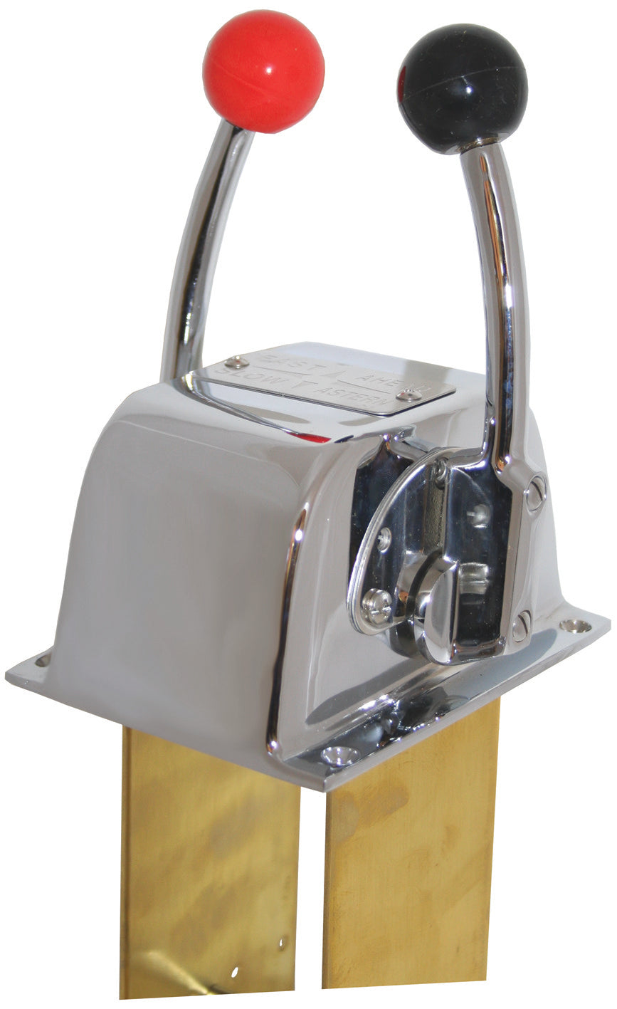 Single action engine controls in side or top mount configuration with single or dual levers. Heavy duty chrome plated brass body and levers complete with plate, clamps and all mounting hardware required.