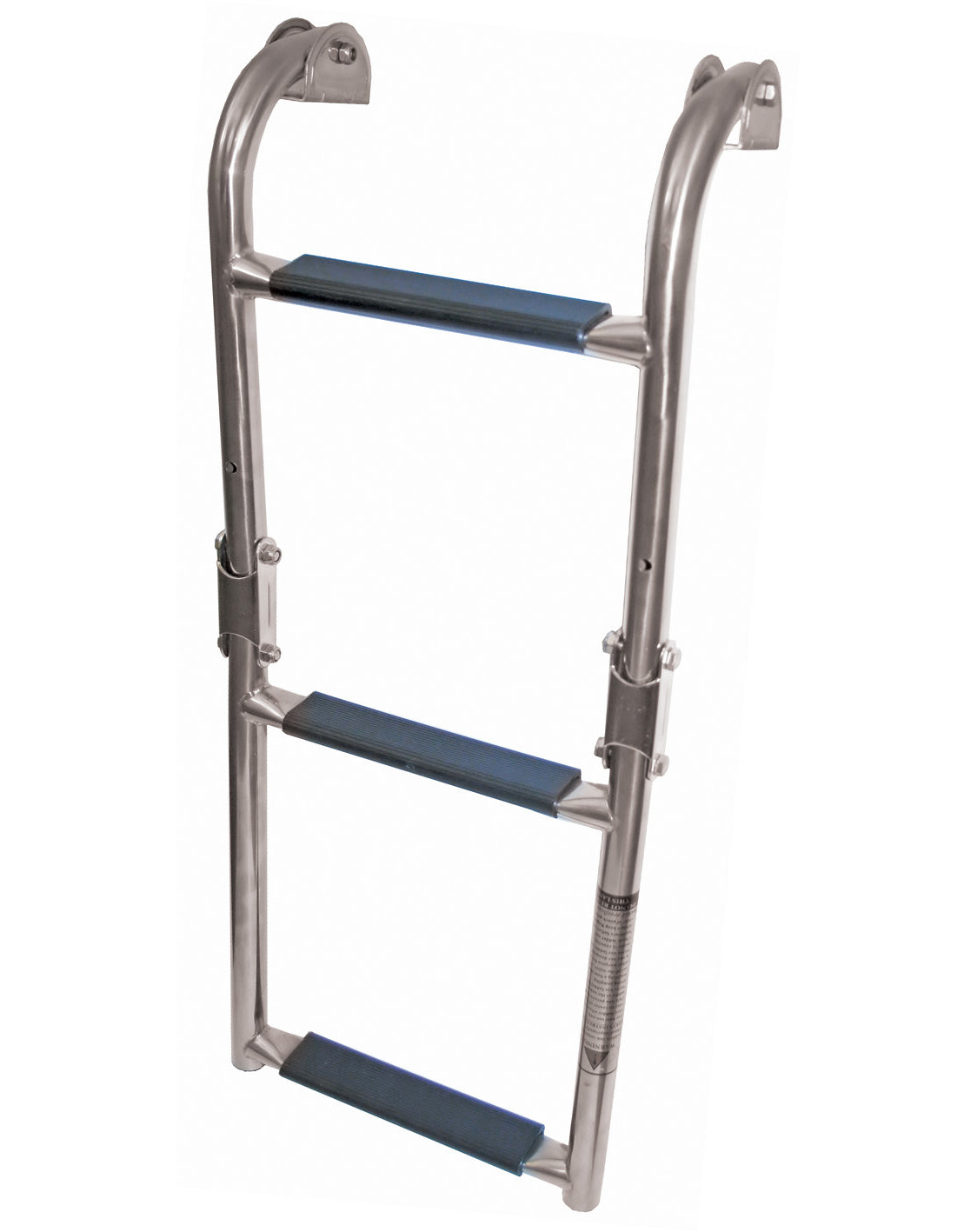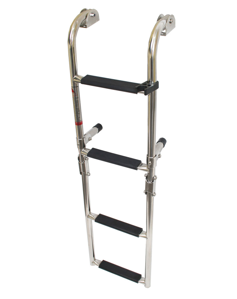 They are available in 3 or 4 step versions and include adjustable stainless steel top retaining brackets and length adjustable stainless bottom legs to allow them to suit different styles and angles of transoms.Â