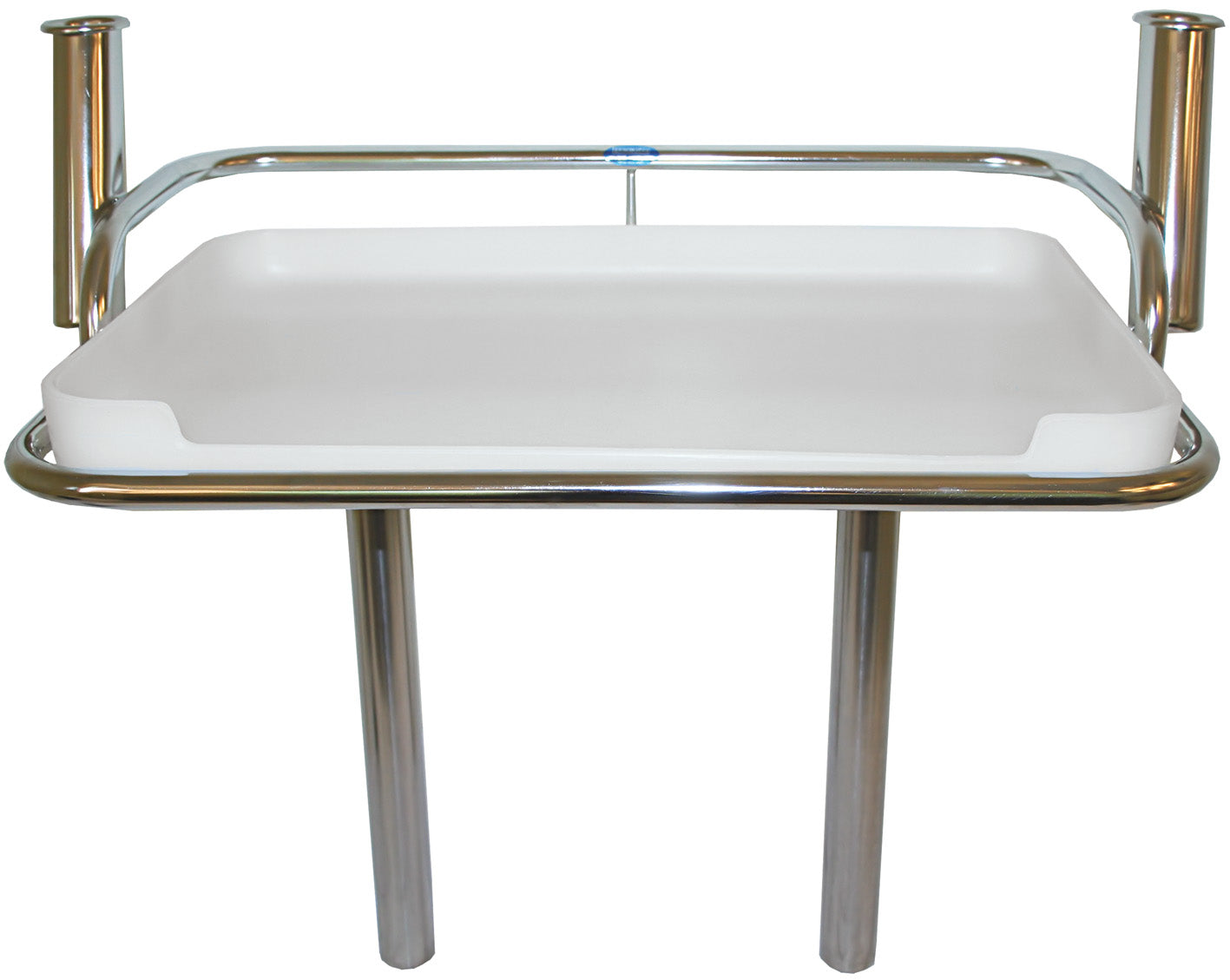 This heavy duty station is made in New Zealand from 316 grade stainless steel with heavy duty welds and will give rugged service in the harsh marine environment. Incorporates two stainless steel rod holders. The legs fold up underneath and the bait station can be easily and completely removed from the boat. Legs fold up underneath and fit into standard 40mm ID vertical rod holders.