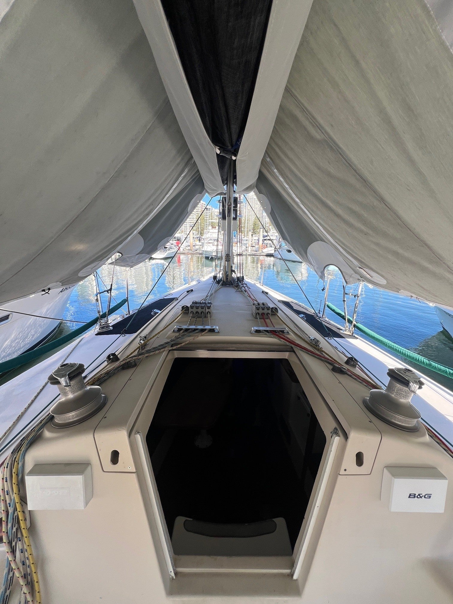 With a solid maintenance history, thoughtful upgrades, and an excellent sail inventory, RISK is turn-key and ready for her next chapter. She’s been kept in very good condition for her age, and offers a competitive, capable entry into the one-design or IRC fleet, with enough comfort for twilight sailing and weekend cruising.
