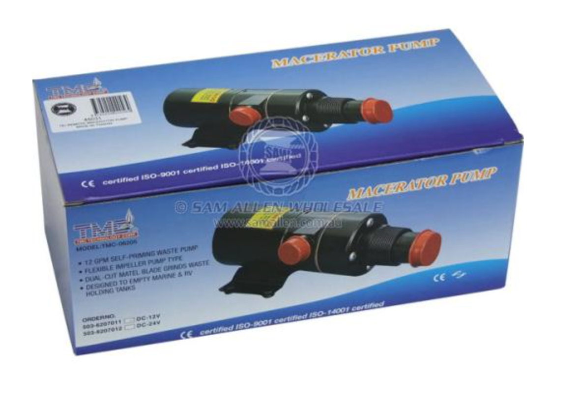 | • Designed to empty marine and RV holding tanks. This pump macerates and discharges grey water and waste mixtures. • Self priming up to 1.5 metres. • Flexible impeller pump type. • Dual-cut metal blade grinds waste. • Port Size: Inlet: 1-1/2 inch Outlet 1 inch. • Delivery head 5m (16ft). • CE Certified ISO-9001 and ISO-14001. |