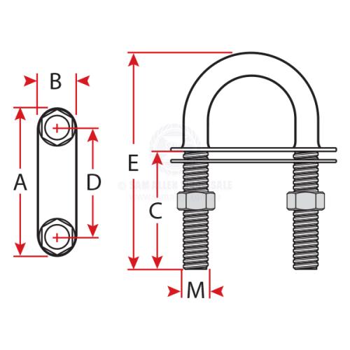 U-BOLTS - WELDED FACE PLATE - STAINLESS STEEL
