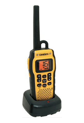 Uniden MHS050 Submersible / Waterproof* 2.5W VHF Marine Radio that Floats – Includes Carabiner Clip