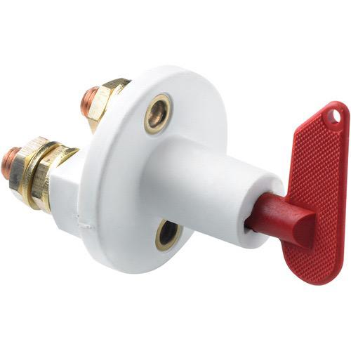 May be connected to either the positive or the negative electric cable. Two positions: "on" and "off". In the "off" position the key may be removed (except models 150 and 600). Provided with two M10 connectors. Model 250T is a twin pole switch to make/break both the positive and negative cables. Model 600 is watertight according to IP 67.
