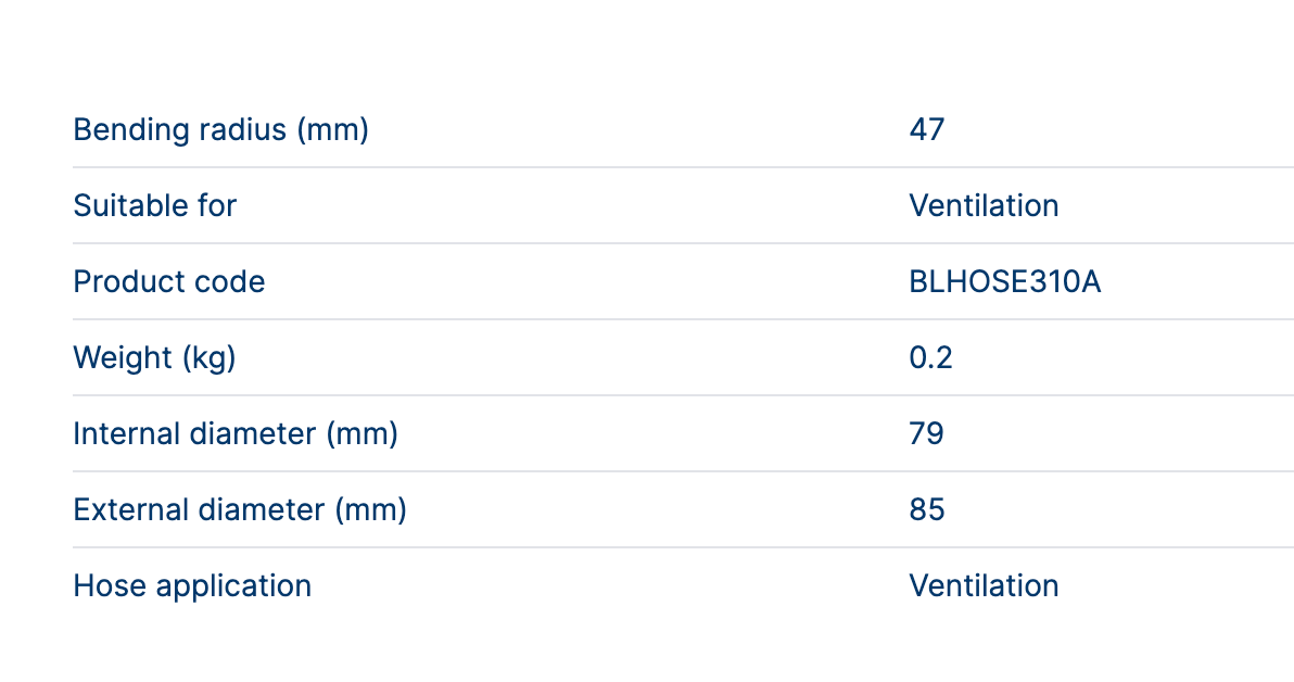 VETUS Blower/Ventilator hose (small) 10 metre length