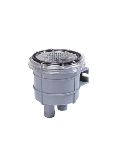 The cooling water strainer type FTR140 is ideal for use with shower drain pumps. Materials: Housing: Polypropylene GF Filter element: HD Polyethylene Cover: Styrol/Acrylnitril SAN All VETUS cooling water strainers are provided with a transparent cover, allowing easy inspection of the filter without dismantling.