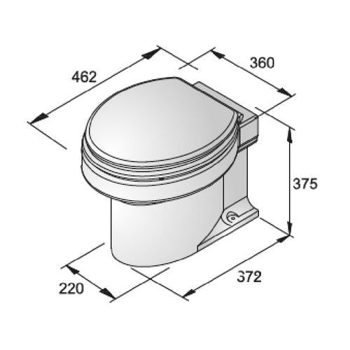 Very competitively priced and comfortable toilet. A welcome alternative to manually operated hand-pumped toilet. Operated by a simple rocker switch or control panel which must be ordered separately.