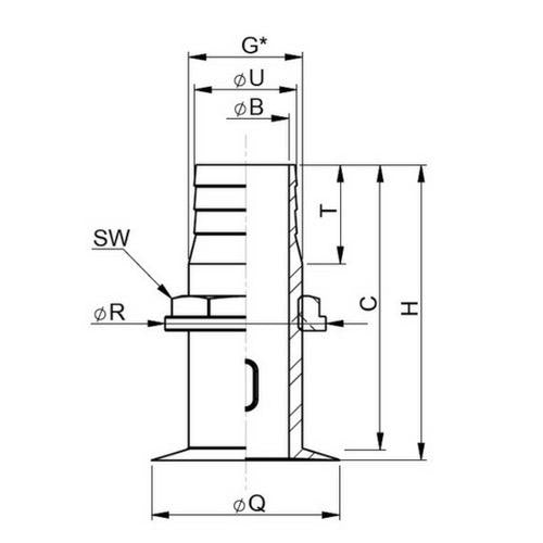 Flush Thru-hull with Hose Connection Polishesd Surface