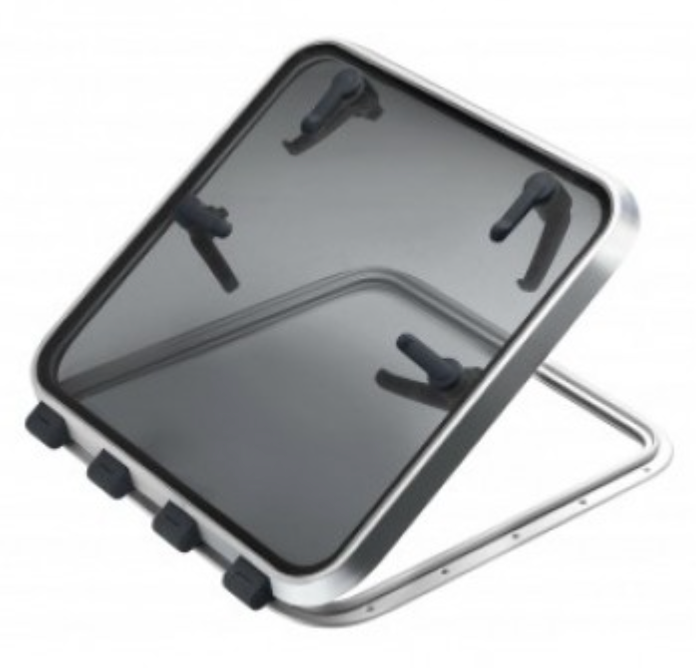 MAGNUS hatches have a satin sheen anodized frame profile with a 10mm thick ‘dark smoke’ coloured acrylic and are designed for ocean use, design category , Area I. These hatches can be opened from the inside or outside through 180° with almost no obstructions in the opening. They have a ventilation position and can be locked completely watertight.The cut-out sizes of this type match the market-based dimensions. Application on habitable multihulls as a means of escape in the inverted position, is subject to European legislation. Please contact our glazing team for further information.