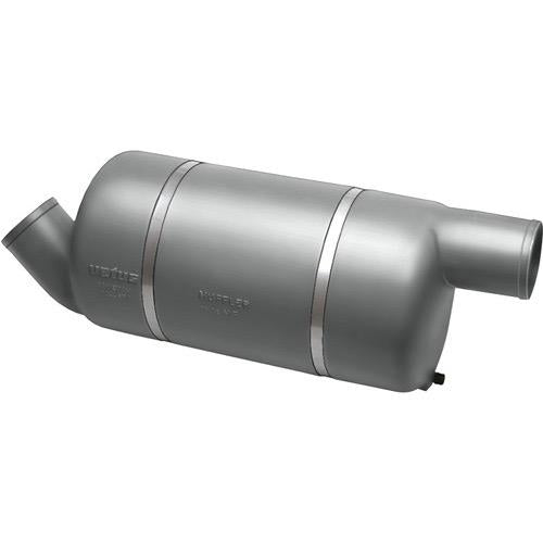 This system is only applicable to water-injected exhaust systems and is perfect for fast craft with powerful engines without available space for installation of a waterlock and/or gooseneck. By using this compact system you have tremendous reduction of exhaust noise with minimal back pressure. All parts are made of synthetic materials, corrosion free and light weight.