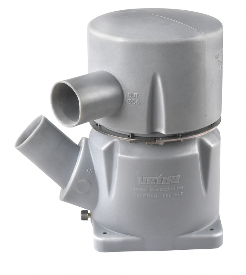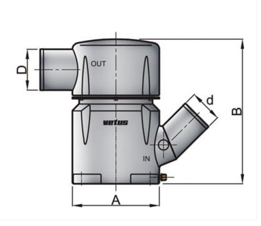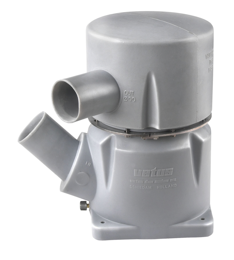 This type of waterlock is designed for modern high performance boats with one or two large engines which have little space to spare in the engine room. The outlet connection at the top can rotate through 360º and the inlet connection is at an angle of 45º upward. Type MG can only be installed in water injected exhaust systems. Its body is entirely made of synthetic materials, therefore not susceptible to corrosion or galvanic action.