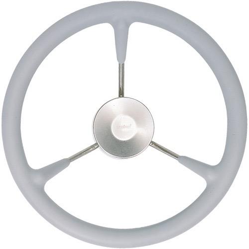 Model KS has stainless steel (AISI 316) rims, spokes and a cap. The rims have a layer of semi-hard PU-foam with an integral skin. These soft-feel wheels are resistant to all weather conditions.