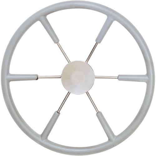 Model KS has stainless steel (AISI 316) rims, spokes and a cap. The rims have a layer of semi-hard PU-foam with an integral skin. These soft-feel wheels are resistant to all weather conditions.