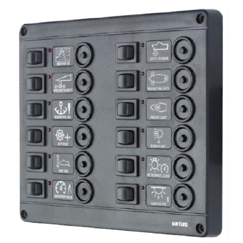 VETUS switch panels are supplied pre-wired. The only work required is to connect the positive and negative feeds of the various services (lights, pumps etc.). These panels are made of synthetic and non-corrosive materials, but are not waterproof.