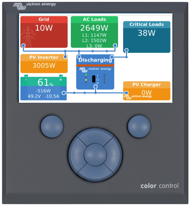 Victron Color Control GX remote control and monitoring panel with internet monitoring and control capability.