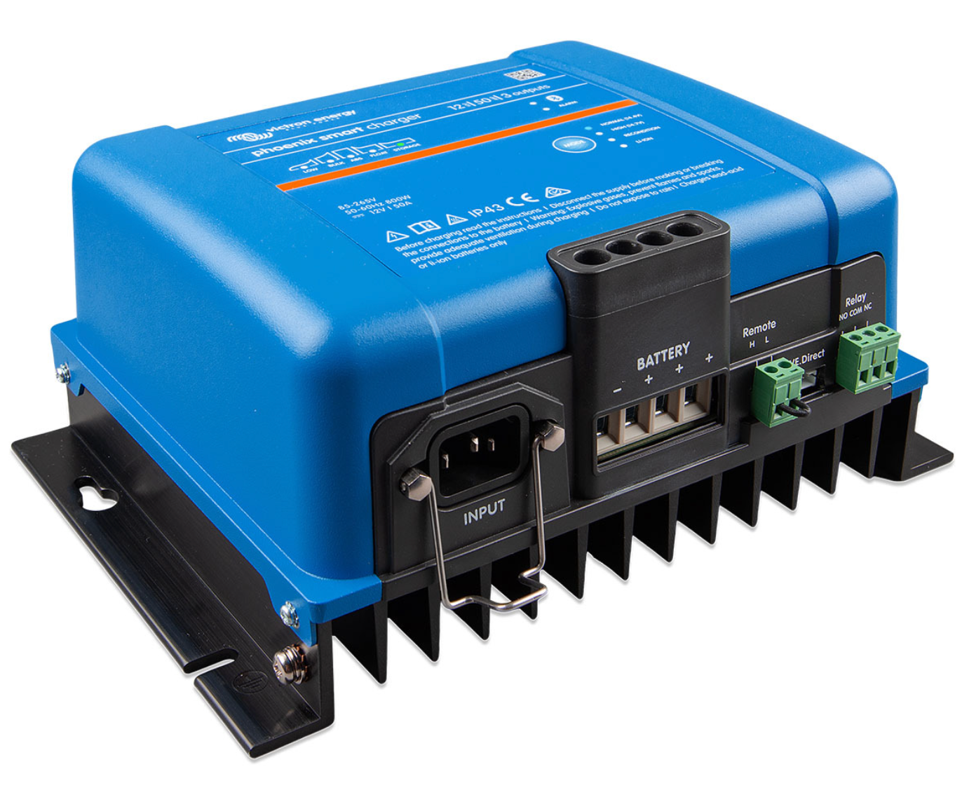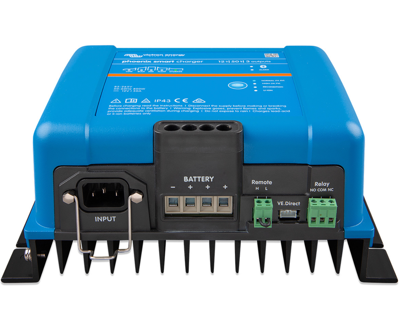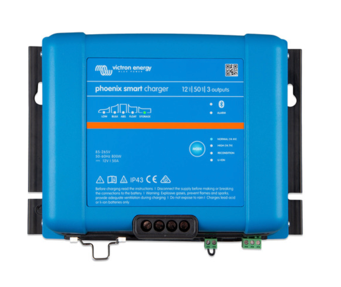 Victron Energy Phoenix Smart IP43 Battery Charger features a worldwide input voltage range of 85-250VAC & DC output for 12VDC batteries with up to 50A charge in the 3 Output configuration to charge up to 3 batteries. Suits Dry, Wet & Lithium