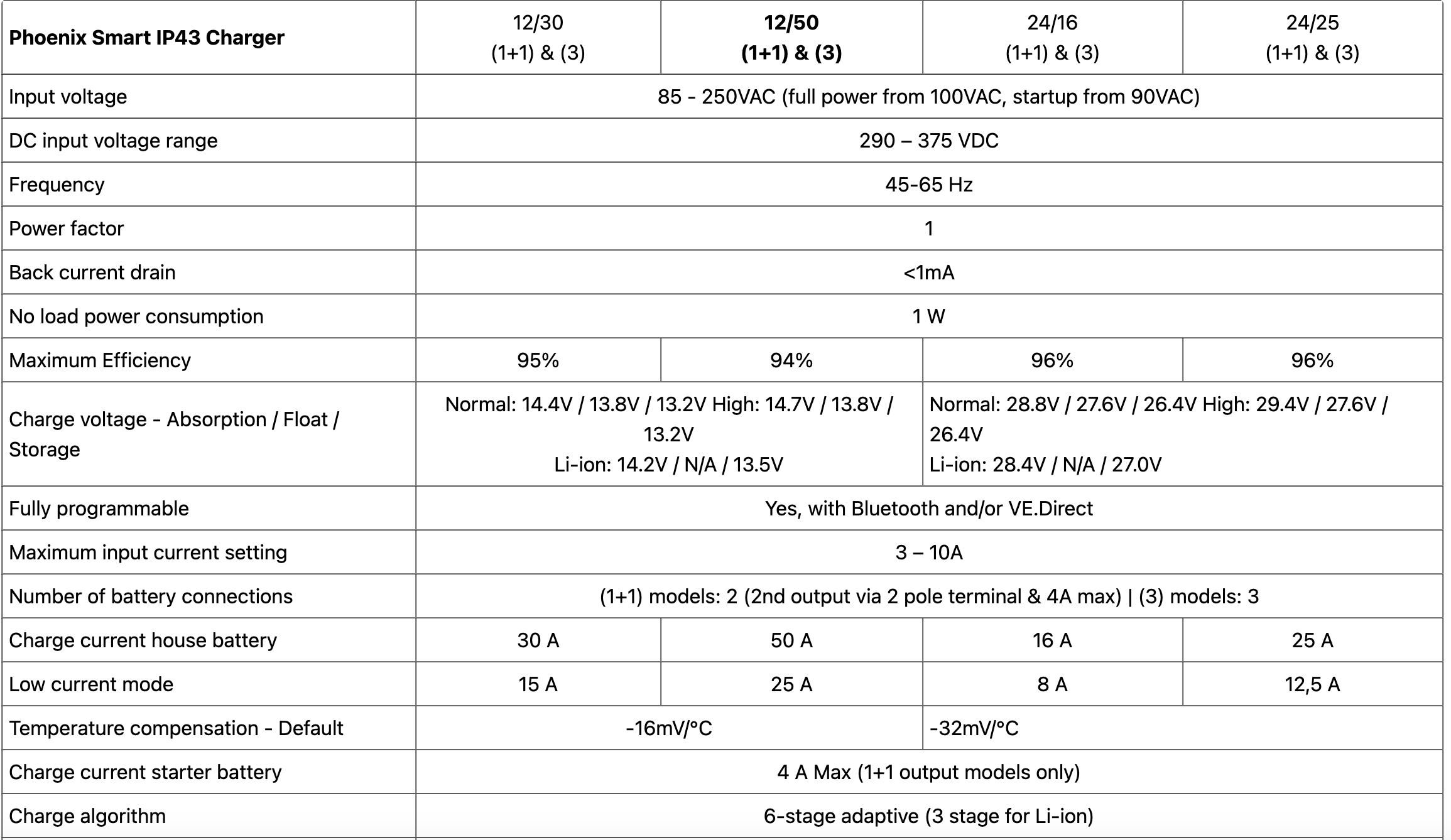With boat owners in mind, this worldwide voltage adaptive 5-step Phoenix 50A Battery Charger with 3 current outputs to charge up to 3 battery banks. With Bluetooth enabled, you can monitor the charger and set alarms straight from your phone.