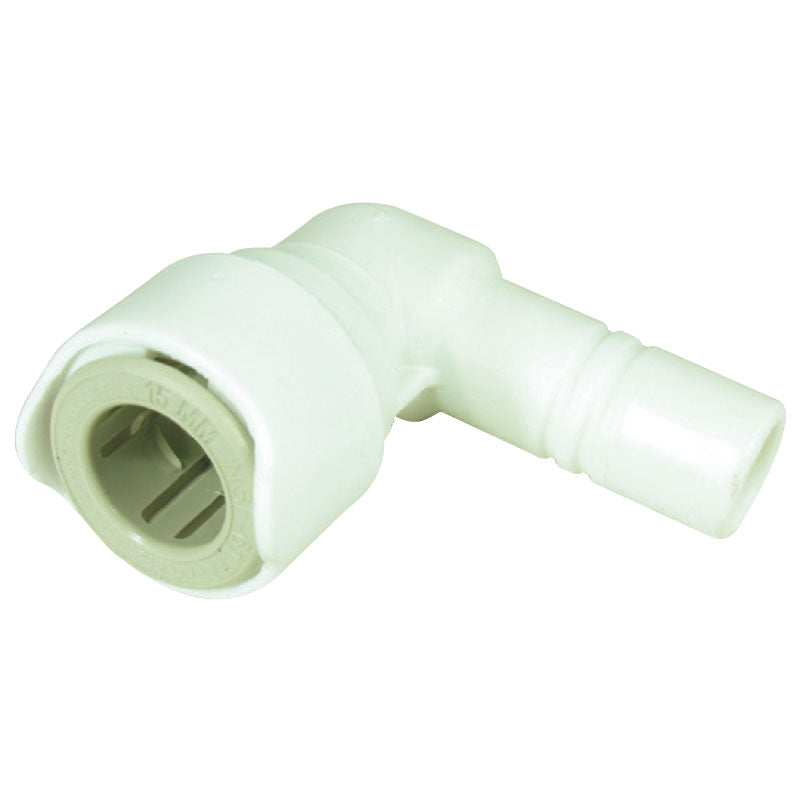 Elbow Fitting accepts Quick Connect 15 tubing one end 15mm stem fitting at the other