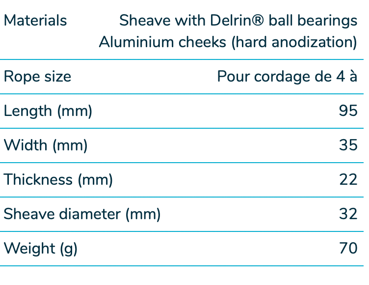 Rope diameter (from 4 to 12 mm)