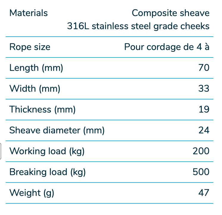 Wichard Stainless steel double block - Sheave 24 - Shackle becket & V cleat