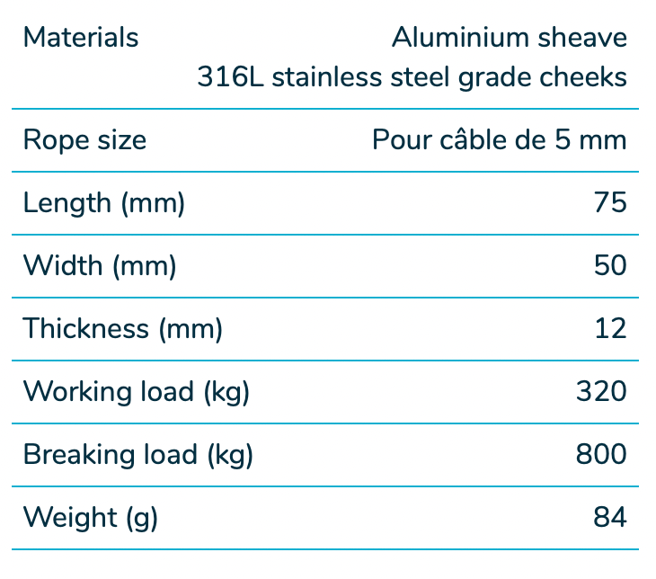 Wichard Stainless steel single block - Alu sheave 50 - For 5 mm wire