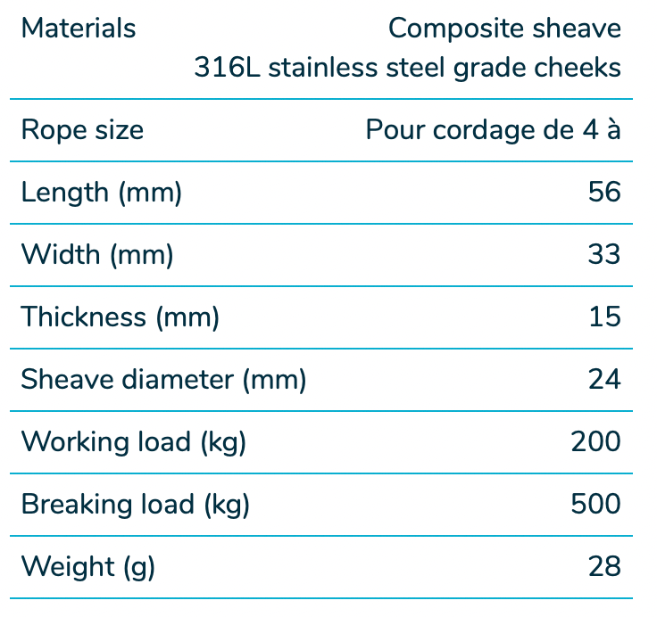 Wichard Stainless steel single block - Sheave 24 - V cleat & becket