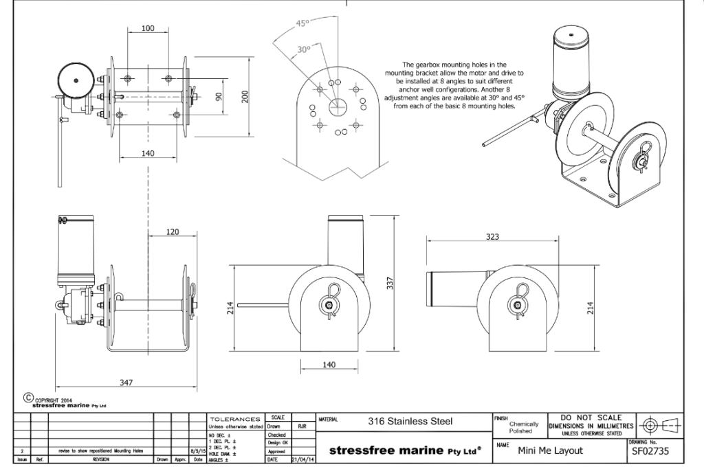 The Stressfree Marine Mini Me Standard anchor winches additionally feature:
